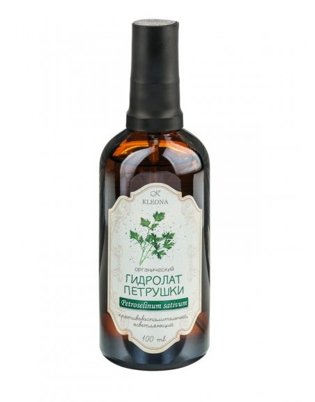 with a refreshing aroma of parsley. For daily washing and skin care around the eyes. Gently cleanses and removes the remains of water-soluble cosmetics. Soothes, relieves irritation and redness, eliminates signs of fatigue, puffiness, dark circles under the eyes. Pleasantly moisturizes, gives a feeling of freshness and comfort. Smoothes the skin, tones and restores elasticity. Natural antioxidant, rejuvenates and improves complexion, brightens skin (including freckles). It has antiseptic and anti-inflammatory action.