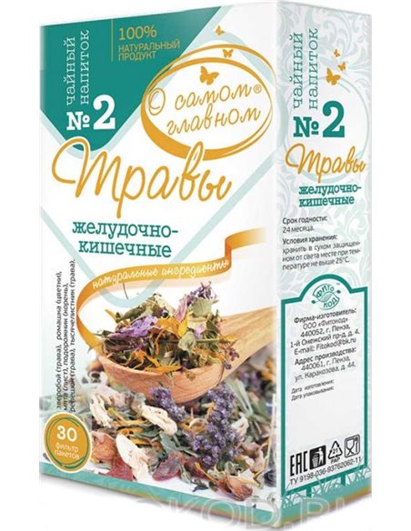 Состав: зелёный чай, зверобой (трава), ромашка (цветки), мята (лист), подорожник (корень), репешок (трава), тысячелистник (трава), отруби пшеничные.