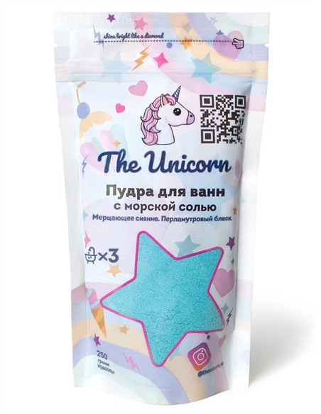 The Unicorn Голографическая мерцающая Пудра для ванн с морской солью Pool Party (Голубая) 250г