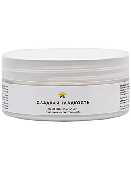 Взбитое масло для тела «Сладкая гладкость» на основе ценных масел прекрасно ухаживает за сухой, обезвоженной кожей тела, делая ее упругой, устраняя ощущение стянутости и шелушения. Произведенное на основе масла ши, с добавлением масел рыжика и ванили, масло обеспечивает интенсивное питание, глубокое увлажнение и защиту. Нежная текстура и сладкий аромат расслабит и превратит нанесение взбитого масла в истинное удовольствие для сладкоежек и не только.