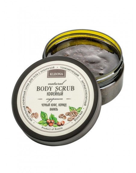 Состав: кукуруза дробленая, кофе черный, масло оливковое, масло кокосовое, масло рисовое, корица, крахмал рисовый, миндальное масло, додецилглюкозид натрия, глицерилолеат, глицерин растительного происхождения, масло зеленого кофе, сорбитол, бензиловый спирт, триглицериды каприловой/каприновой кислот, сорбитанкаприлат, экстракт ванили, комплекс полиненасыщенных жирных кислот (витамин F), токоферола ацетат (витамин Е).
