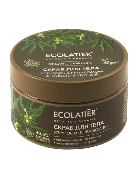 Скраб для тела ECOLATIER® Organic Cannabis с активными ингредиентами в составе обладает антицеллюлитным эффектом, улучшает лимфодренажные процессы, воздействует на проблемные зоны тела – бедра, ягодицы, живот. Улучшает межклеточный обмен, повышает эластичность кожи.