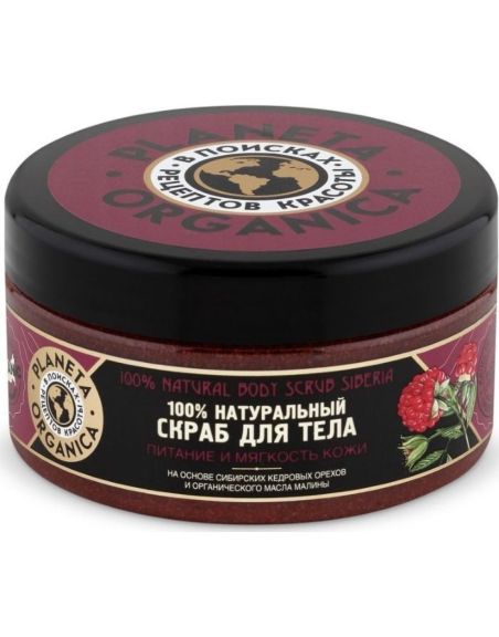 100% натуральный продукт. - Органическое масло малины и органический экстракт морошки; - Растительные компоненты из Алтая; - Естественная защита кожи от повреждения УФ-А и УФ-B лучей; - Микроциркуляция крови и лимфы. Масло малины уникально, потому что содержит высокий уровень витамина Е в форме гамма-токоферола, который является самой активной формой витамина Е для защиты кожи. В результате масло малины обеспечивает естественную защиту кожи от повреждения УФ-А и УФ-B лучей. Привыкшая постоянно бороться за жизнь в суровом климате флора Сибири обладает мощнейшим жизненным потенциалом. Именно поэтому при изготовлении этого скраба используются растительные компоненты, произрастающие в природных заповедниках Алтая. Скорлупа кедровых орешков обеспечивает глубокое очищение и обновление кожи. Активизирует микроциркуляцию крови и лимфы.