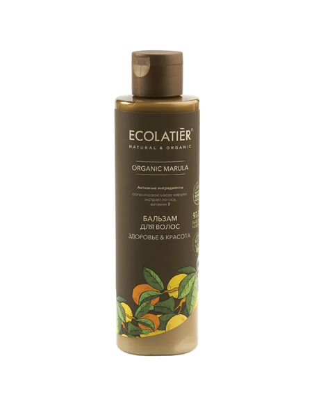 Бальзам ECOLATIER® Organic Marula эффективно питает и уплотняет волосы, защищает от ломкости и стрессов.