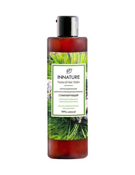 Встряхнуть флакон, нанести бальзам на влажные волосы, помассировать, выдержать 3-5 минут, тщательно смыть. Рекомендуется совместное использование с шампунем для волос INNATURE Стимулирующий.