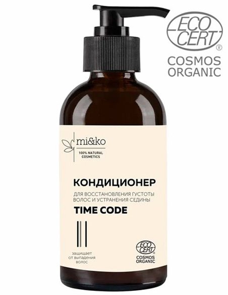 Кондиционер Time Code — это передний край развития органик-косметики, содержащей активные компоненты с научно подтвержденной эффективностью. Международный сертификат COSMOS ORGANIC гарантирует использование ингредиентов, разрешенных для натуральной и органической сертифицированной косметики. Производственные практики «Ми&Ко» также соответствуют самым строгим требованиям к экологичности.