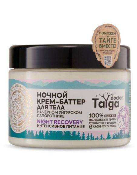 НОЧНОЙ КРЕМ-БАТТЕР ДЛЯ ТЕЛА NIGHT RECOBERY ИНТЕНСИВНОЕ ПИТАНИЕ Превосходно питает и смягчает кожу, придает ей бархатистую гладкость и сияние. Активные компоненты насыщают витаминами и микроэлементами, поддерживают оптимальный гидролипидный баланс. Активно восстанавливает клетки кожи. Интенсивно питает. Подходит для очень сухой и чувствительной кожи Черный уйгурский папоротник - источник органических кислот и витамина Е, интенсивно питает и обновляет клетки кожи. Корень сибирского женьшеня - самое эффективное природное средство для тонуса и упругости кожи, повышает ее способность к регенерации, возвращает молодость и красоту. Белый таежный кедр по содержанию витамина Е превосходит масло оливы. Омегамасло белого таежного кедра, обогащенное Омега 3-6-9, глубоко питает, разглаживает и выравнивает тон кожи. Благодаря высокому содержанию витаминов F и В поддерживает водный баланс, заживляет и успокаивает.