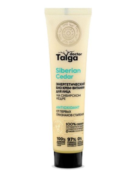 ЭНЕРГЕТИЧЕСКИЙ БИО КРЕМ-ВИТАМИН ДЛЯ ЛИЦА ANTIOXIDANT ОТ ПЕРВЫХ ПРИЗНАКОВ СТАРЕНИЯ Тонизирующая ультра легкая текстура мгновенно впитывается, помогая коже оставаться молодой и сияющей. Активные натуральные витамины наполняют ее энергией и свежестью, предупреждая появление первых признаков увядания кожи. Идеально упругая и ровная кожа. Увлажняет и тонизирует. Дарит комфорт и свежесть СИБИРСКИЙ КЕДР - ЭНДЕМИК ТАЙГИ Органическое масло сибирского кедра - природный источник Омега 3-6-9. Обладает тонизирующим и омолаживающим действием. Борется с первыми возрастными изменениями, повышает тонус и упругость кожи. Экстракт дикой таежной черники богат витаминами В и С, которые повышают защитные функции молодой кожи, делают ее гладкой и нежной. Витаминный комплекс А и Е обновляют и тонизируют клетки, способствуют выработке коллагена и эластина, защищают от воздействия свободных радикалов.