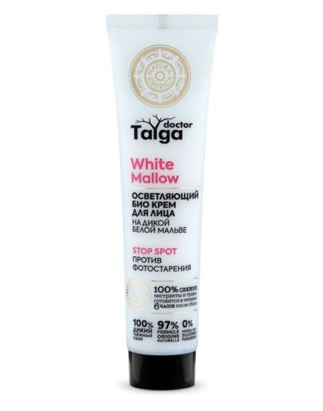ОСВЕТЛЯЮЩИЙ БИО КРЕМ ДЛЯ ЛИЦА STOP SPOT ПРОТИВ ФОТОСТАРЕНИЯ Эффективно выравнивает тон кожи, предупреждает появление пигментных пятен, разглаживает мелкие морщинки и повышает ее защитные функции. День за днем кожа пробуждается и становится более гладкой и сияющей. Совершенный цвет лица. Пролонгированное защитное действие. Борется с возрастными изменениями ДИКАЯ БЕЛАЯ МАЛЬВА - ПРИРОДНЫЙ ИСТОЧНИК ФИТОЭСТРОГЕНОВ И ВИТАМИНА А Дикая белая мальва защищает от воздействия солнечных лучей. Вытяжка из корня таежного одуванчика содержит витамины А, В1-В12, С и Е, которые оказывают комплексное омолаживающее действие, улучшают цвет лица и эффективно борются с пигментацией и возрастными изменениями. Натуральный арбутин медвежьей ягоды проникая в глубокие слои кожи, выравнивает и осветляет тон кожи.