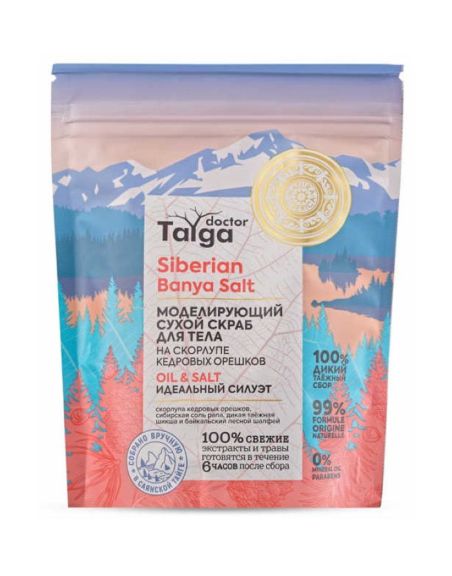 МОДЕЛИРУЮЩИЙ СУХОЙ СКРАБ ДЛЯ ТЕЛА OIL&SALT ИДЕАЛЬНЫЙ ТОНУС Таежные растения в сочетание с маслами и натуральными скрабирующими частичками оказывают эффект микромассажа, активно обновляют клетки кожи, тонизируют и питают.Подтягивает и улучшает эластичность кожи. Придает гладкость и сияние. Насыщая витаминами и микроэлементами СИБИРСКИЙ КЕДР - ЭНДЕМИК ТАЙГИ Скорлупа кедровых орешков бережно отшелушивают кожу, придают ей гладкость и ухоженный вид. Сибирская соль рапа эффективно обновляет клетки кожи, выводит лишнюю влагу, оказывает лимфодренажный эффект. Дикая таежная шикша содержит в 2 раза больше витамина С, чем лимон, а так же кофейную кислоту, которые тонизируют и придают коже сияющий вид. Байкальский лесной шалфей - источник витамина А, Е и калия, которые выводят токсины, питают и наполняет кожу жизненной энергией.