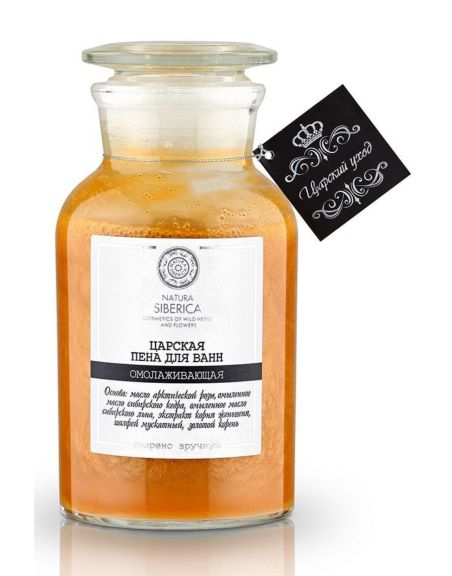 Роскошная ванна, наполненная ароматной пеной, дарит поистине царский уход, снимает ощущение усталости и стресса, восстанавливает гармонию Ваших чувств. Драгоценное розовое масло является прекрасным омолаживающим средством, в сочетании с маслом сибирского кедра возвращает коже мягкость и эластичность. Золотой корень и женьшень активизируют процесс обновления кожи, делая её более подтянутой и упругой. Масло сибирского льна и шалфей мускатный, богатые витаминами А и Е, природными антиоксидантами, обеспечивают полноценное питание кожи, замедляют процессы старения.