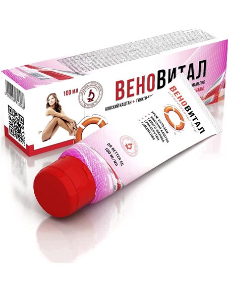 Троксерутин - производное рутина, обладает венотонизирующими, противовоспалительными, противоoтечным и антиоксидантными свойствами.Экстракт конского каштана - повышает эластичность сосудов, укрепляет стенки капилляров и вен. Уменьшает проницаемость капилляров, улучшает микроциркуляцию, препятствует образованию застойных явлений в капиллярах, ускоряет кровоток в венах, что препятствует образованию или нарастанию явлений тромбоза.Экстракт Гинкго-Билоба - улучшает энергетический метаболизм клеток, снижает проницаемость капилляров и улучшает микроциркуляцию крови, укрепляет стенки сосудов, повышает эластичность и тонус сосудов, кровоснабжение тканей, обладает противоoтечным действием.Экстракт Гамамелиса - проявляет бактериостатическое, сосудосуживающее и вяжущее действие. Его широко используют в косметологии при варикозном расширении вен.Результат: Предупреждает появление застойных явлений, снятие отечности, устраняет чувство тяжести и усталости.Крем-бальзам для ног ВЕНОВИТАЛ на основе натуральных природных компонентов. Содержит природные экстракты конского каштана, гинкго-билоба, гамамелиса и троксерутин.