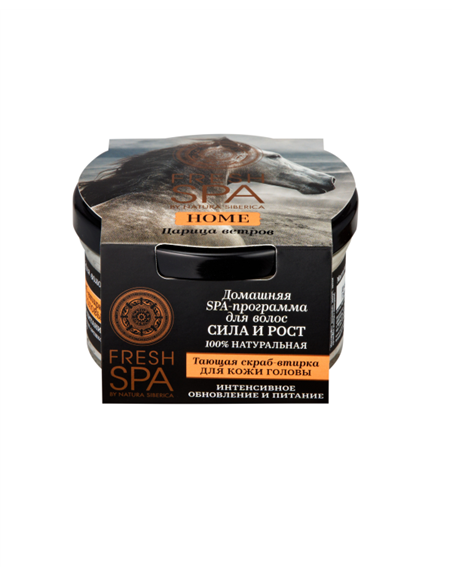 Тающая скраб-втирка пробуждает волосяные луковицы, бережно очищая и наполняя их силой и энергией. Тиамин и биотин, содержащийся в медовом кумысе, глубоко проникают, укрепляя волосы изнутри и делая их сильными. Масло кедровых орешков увлажняет и питает кожу головы витамином Е. Корень таймырского имбиря стимулирует рост новых волос.