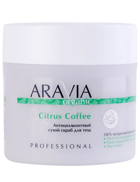 100% натуральный сухой кофейный скраб с апельсиновой цедрой на масляной основе. Молотый кофе арабика улучшает микроциркуляцию и стимулирует дренажные процессы, устраняя лишние жировые отложения и целлюлит. Цедра и эфирное масло апельсина, богатые витамином С, тонизируют, осветляют кожу и устраняют токсины, которые участвуют в процессе образования целлюлита. Таким образом восстанавливаются обменные процессы в коже, и происходит сокращение лишних объемов и бугристости. Масло какао уменьшает сухость и шелушение, стимулирует процессы регенерации, оказывает профилактику образования растяжек. Скраб делает кожу более упругой и эластичной, помогая добиться идеально стройной фигуры. Назначение: программы похудения, антицеллюлитные процедуры, подготовка к обёртыванию, лифтинг и тонус кожи. Рекомендации для использования: Профессиональный уход: этап подготовки и очищения салонной процедуры.Домашний уход: 1-2 раза в неделю. Объем: 300 мл.