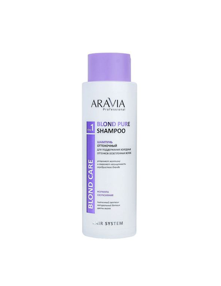 Шампунь для мягкого бережного очищения осветленных, обесцвеченных волос, препятствующий пересушиванию, пожелтению и выцветанию холодного блонда. Благодаря интенсивному фиолетовому пигменту шампунь нейтрализует нежелательную желтизну и придает цвету благородный серебристый тон.Для комплексной и пролонгированной защиты цвета рекомендуем чередовать в уходе применение оттеночного шампуня Blond Pure Shampoo и оттеночной маски-кондиционера для восстановления цвета и структуры осветленных волос Blond Revive Mask.Важно! Оттеночные средства ARAVIA Professional содержат высокоактивный фиолетовый пигмент и поэтому не предназначены для одновременного, а также ежедневного применения.Назначение: шампунь для мягкого очищения волос и кожи головы, нейтрализации желтизны и придания холодного оттенка светлому блонду.Рекомендации для использования: подходит для домашнего использования.Объем: 400 мл.