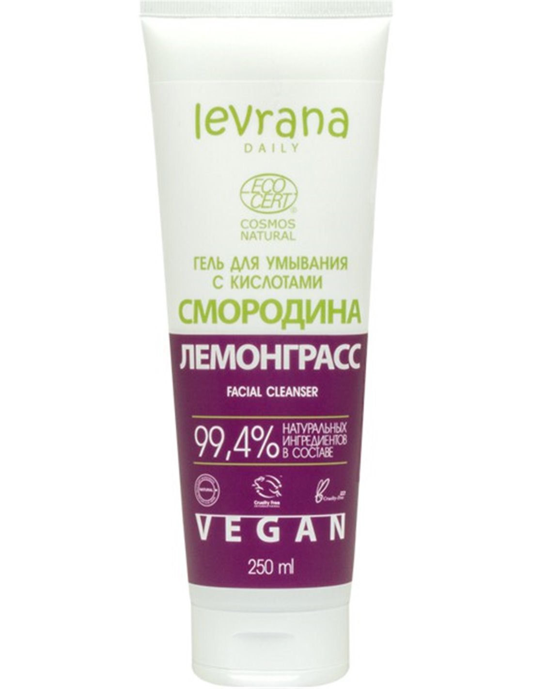 Гель с кислотами для бережного очищения, выравнивания тона и микрорельефа кожи с нежным ароматом смородины и лемонграсса.