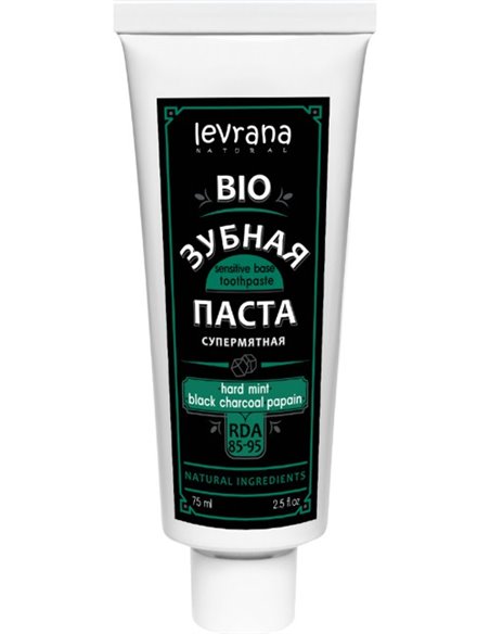 Черная натуральная зубная паста с насыщенным и ярким вкусом мяты эффективно удаляет зубной налт, возникающий в результате курения, употребления кофе, красного вина и других факторов. Растительный фермент папаин расщепляет белковую основу окрашенного налта, полирует зубную эмаль, не повреждая е. Активные растительные компоненты зубной пасты препятствуют формированию зубного камня, органический кедровый экстракт заживляет, укрепляет десны, ментол сохраняет ощущение свежести во рту.