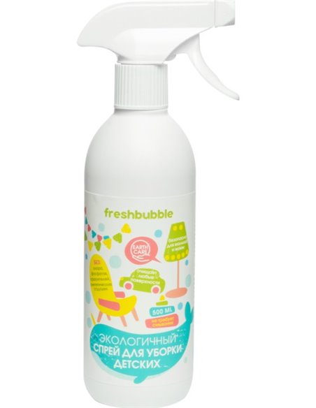 Средство Freshbubble подходит для уборки всех поверхностей, в том числе в детских комнатах, протирки игрушек и мебели. Обладает антибактериальным эффектом. Эффективно удаляет органические загрязнения от молока, фруктовых и овощных пюре, соков, а также следы от фломастеров, карандашей и прочие бытовые загрязнения. Быстро удаляет следы загрязнений и пыли, бережно очищает поверхности. Содержит экстракты кедра и магнолии. Не оставляет разводов, придат блеск.