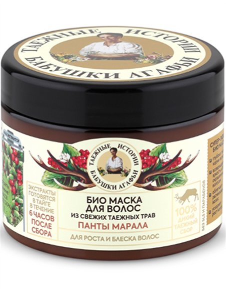 В НАШЕЙ МАСКЕ ДЛЯ РОСТА И БЛЕСКА ВОЛОС ТОЛЬКО НАТУРАЛЬНЫЕ ИНГРЕДИЕНТЫ: ПАНТЫ СЕВЕРНОГО МАРАЛА активизируют рост сильных и крепких волос благодаря высокому содержанию коллагена, цинка и полезных аминокислот; СВЕЖИЕ ТАЕЖНЫЕ ТРАВЫ укрепляют корни волос, заряжают мощной энергией витаминов, делая волосы густыми и блестящими. - глубоко питает корни волос; - возвращает яркость окрашенным волосам; - облегчает расчесывание волос; - ускоряет рост волос.