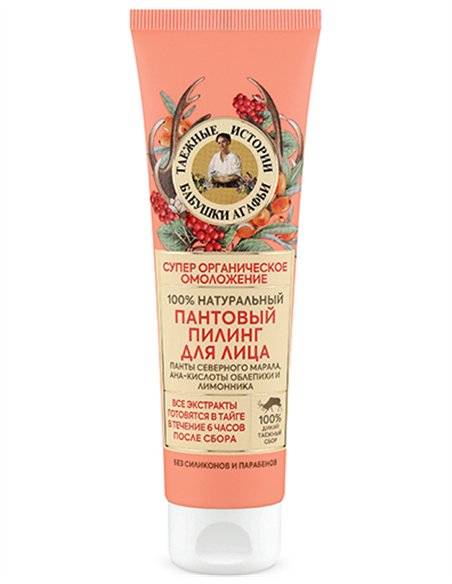 100% НАТУРАЛЬНЫЙ ПАНТОВЫЙ ПИЛИНГ ДЛЯ ЛИЦА - бережно обновляет кожу - возвращает сияние и молодость кожи - уменьшает пигментацию В НАШЕМ СУПЕР ОМОЛАЖИВАЮЩЕМ ПИЛИНГЕ ДЛЯ УМЫВАНИЯ ТОЛЬКО НАТУРАЛЬНЫЕ ИНГРЕДИЕНТЫ: ПАНТЫ СЕВЕРНОГО МАРАЛА, сертифицированные государственным хозяйством в Туве, содержат коллаген и эластин, более 30 минералов и микроэлементов, а также 20 аминокислот, которые поддерживают водно-липидный баланс и эффективно разглаживают морщины. Недаром панты марала называют эликсиром молодости! AHА-КИСЛОТЫ ОБЛЕПИХИ и ЛИМОННИКА - органические кислоты, эффективно решают сразу несколько проблем: оказывают мягкое отшелушивающее действие, увлажняют и обновляют кожу, стимулируют выработку эластина и коллагена, сужают поры благодаря высокой концентрации. Линоленовая кислота глубоко увлажняет кожу, яблочная - ускоряет клеточные обменные процессы, а лимонная кислота отбеливает. Кожа становится гладкой, ровной и сияющей.