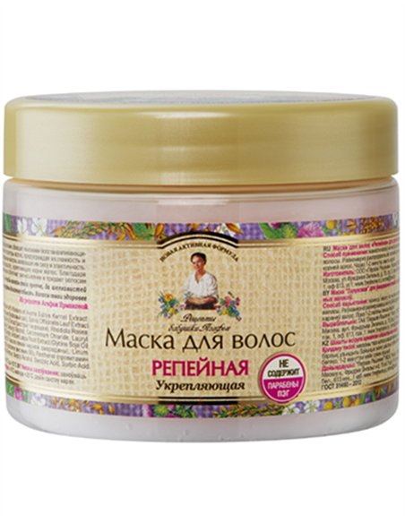 Репейное масло незаменимое в уходе за волосами, обладает высокими восстанавливающими свойствами, способствует укреплению структуры волос, предупреждая их ломкость и сечение. Овсяные отруби питают поврежденные волосы, возвращая им силу и эластичность. Березовый сок - известное народное средство, укрепляющее корни волос. Благодаря содержанию масел холодного отжима, маска облегчает расчесывание и придает волосам естественный блеск и шелковистость.