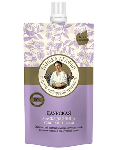 Маска на даурских травах специально создана для мягкого ухода за уставшей и чувствительной кожей лица. Снимает раздражение, увлажняет, повышает защитные свойства, возвращая коже здоровый и ухоженный вид. Даурская лилия и сок огуречной травы увлажняют и успокаивают, выравнивают цвет лица, снимают ощущение стянутости кожи и возвращают чувство комфорта. Кладония снежная уникальна высоким содержанием усниновой кислоты, которая активизирует процессы обновления и надежно защищает кожу от возрастных изменений. Органический экстракт ромашки обладает бактерицидным и заживляющим свойствами.