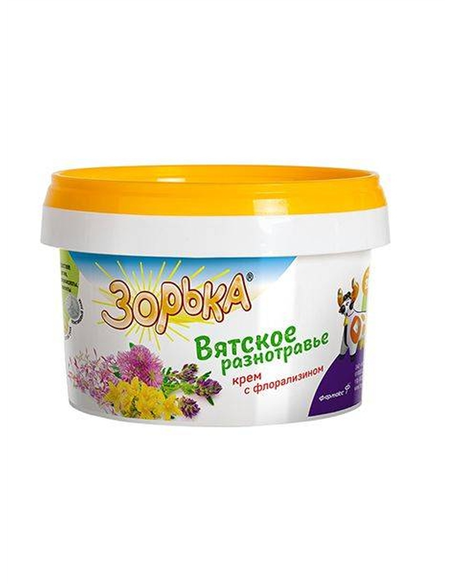 В состав крема «Зорька» Вятское разнотравье» с флорализином включен фитокомплекс из зверобоя, красного клевера, иван-чая и люцерны, придающий коже бархатистость и гладкость.