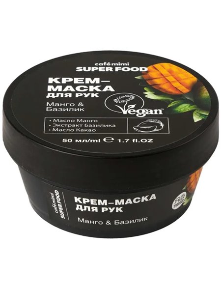 Несмываемая крем-маска для рук с маслом Какао и Манго питает и смягчает кожу.