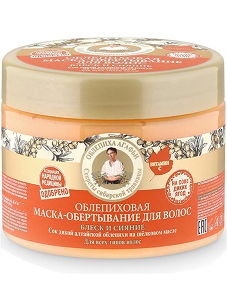 Облепиховая маска-обертывание для волос на основе сока диких ягод насыщает волосы необходимыми витаминами и микроэлементами, моментально восстанавливает их естественный блеск, придает силу и здоровое сияние. Шёлковое масло создает эффект ламинирования, запечатывает поверхность волос защитным слоем, разглаживая и уплотняя их. Органический экстракт белого ириса интенсивно увлажняет волосы, делает их послушными и эластичными. Сок ягод дикой алтайской облепихи насыщает витаминами,придает волосам силу и роскошное сияние.