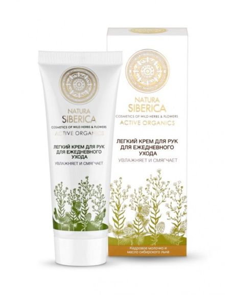 Натуральный сертифицированный крем для ежедневного ухода "Тайга" от Natura Siberica обладает легкой текстурой, но в тоже время насыщен питательными веществами, благодаря чему обеспечивает полноценный ежедневный уход, защищая кожу рук от пагубного воздействия окружающей среды. Масло сибирского кедра, богатое витаминами E и F, стимулирует процесс обновления клеток и насыщает кожу необходимыми аминокислотами, обеспечивая ее эластичность. Органическое масло льна эффективно смягчает и питает кожу. Органический экстракт боярышника увлажняет кожу и насыщает ее кислородом. В то время как органический экстракт тысячелистника обладает бактерицидным и противовоспалительным эффектом.