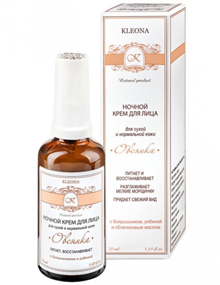 Питательный крем для ежедневного ухода за сухой и нормальной кожей лица. Масляные экстракты боярышника, рябины и масло алтайской облепихи питают кожу, нормализуют обмен веществ, ускоряют регенерацию клеток кожи, замедляют ее старение. Масло зародышей кукурузы насыщает кожу незаменимыми Омега-6 и Омега-9 кислотами. Богатый олигосахаридами овсяный протеин возвращает коже первозданную мягкость.