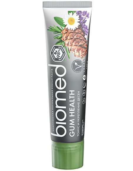 Противовоспалительная зубная паста Biomed GUM HEALTH с насыщенным содержанием растительных экстрактов против бактерий и неприятного запаха изо рта, успокаивает десны и снижает кровоточивость. Погрузитесь в полную гармонию с природой! 29 ключевых натуральных компонентов: 29 ключевых натуральных компонентов: