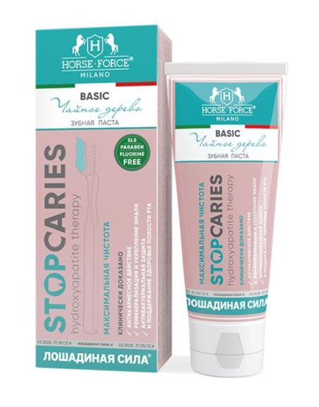 Гидроксиапатит (Hydroxyapatite) — источник природного биоактивного кальция и фосфора, реминерализующий компонент, борется против кариеса, оказывая эффект микропломбы, заполняет повреждённые участки и микротрещины на поверхности эмали, уплотняет открытый дентин, снижает чувствительность зубов и делает эмаль более гладкой и блестящей.
