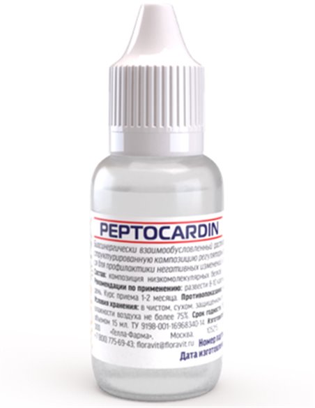 ПептоКардин (PeptoCardin) – биосинергически взаимообусловленный раствор низкомолекулярных белков и пептидов для профилактики негативных изменений в сердечно-сосудистой системе. Улучшает кровообращение, микроциркуляцию, питание и регенерацию тканей. Биорегулятор гомеостаза.