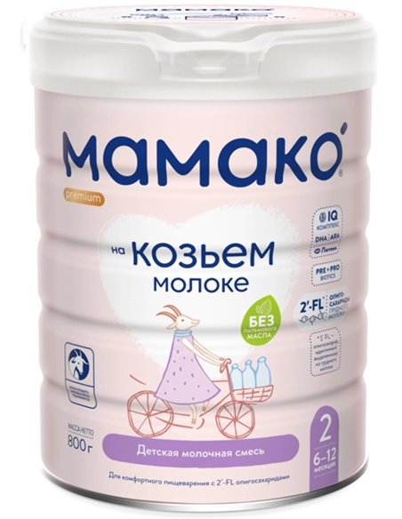 Mamako 2 Premium 6+ месяцев Сухая адаптированная молочная смесь для детей на козьем молоке 800г