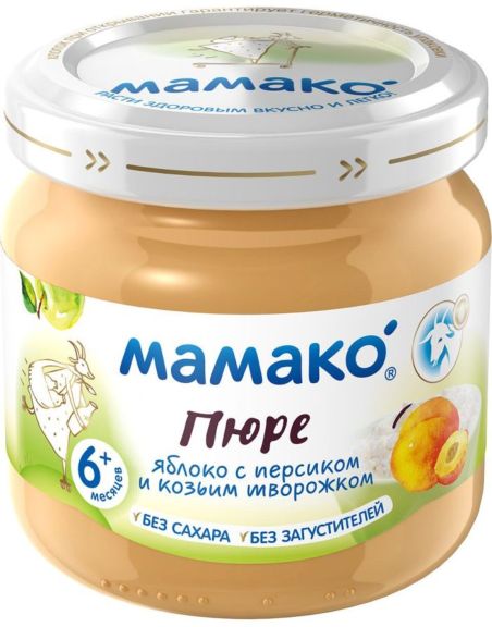 Mamako Пюре из яблок с персиками и козьим творогом 80г