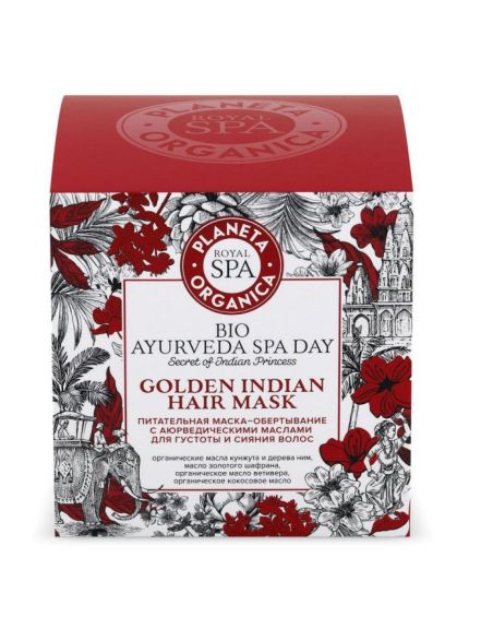 Питательное обертывание с аюрведическими маслами - волшебный уход, секрет которого таится в драгоценных маслах: они проникают в структуру волос, питают пряди, возвращают густоту и природный блеск, оставляя изысканный аромат. Органическое масло кунжута - одно из самых полезных растительных масел, источник Омега 3-6-9, делает волосы сильными и густыми. Масло золотого шафрана природный антиоксидант, индийские принцессы ежедневно наносили на волосы масло для придания им роскошного блеска. Органическое масло ветивера ценный источник витаминов Е и F, укрепляет корни и способствует росту волос. Органическое масло дерева ним делает волосы невероятно гладкими как индийский шелк, за счет олеиновой, линолевой и стеариновой кислоты. Органическое кокосовое масло незаменимое средство для интенсивного увлажнения и питания поврежденных волос. Предотвращает ломкость и защищает волосы от корней до самых кончиков, создавая роскошные, сияющие здоровьем локоны.