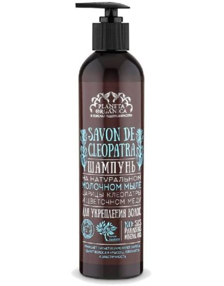 Слух о здоровье и красоте несравненной Клеопатры дошел до нас сквозь толщу тысячелетий, а таинственные рецепты красоты египетской царицы по сей день знамениты во всем мире. Одним из них является уникальное мыло Клеопатры, сваренное на молочной сыворотке и мягком масле кунжута, ставшее основой для этого шампуня. Шампунь не содержит SLS и парабенов, как нельзя лучше подходит для укрепления волос и придания им жизненной энергии. Молочные протеины в составе шампуня питают кожу и волосы, цветочный мед - возвращает эластичность, кунжутное масло смягчает, очищает, ускоряет регенерацию клеток кожи головы и рост волос.