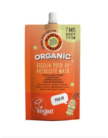 Ежедневная африканская подтягивающая маска для груди и декольте «ORGANIC KIGELIA» оказывает мощный лифтинг - эффект, повышает упругость, подтягивает и восстанавливает эластичность кожи. Маска содержит натуральные ингредиенты: Органический экстракт кигелии - магический африканский суперфуд, содержит мощные природные антиоксиданты, которые активизируют кровообращение, усиливают восстановление кожи, поддерживают и сохраняют форму груди. Масло дикого африканского ямса замедляет процесс старения, ускоряя выработку собственного коллагена, повышает эластичность кожи. Ягоды карликовой пальмы содержат полисахариды, органические кислоты, сохраняют молодость и красоту.
