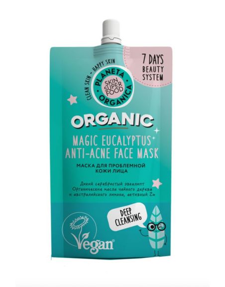 Ежедневная маска для проблемной кожи лица «ORGANIC MAGIC EUCALYPTUS» глубоко очищает кожу, делает ее матовой и свежей. Маска содержит натуральные ингредиенты: Дикий серебристый эвкалипт незаменимый суперфуд обладает природным антисептическим и тонизирующим действием, очищает и восстанавливает баланс кожи, устраняет несовершенства. Органическое масло чайного дерева обладает природным антибактериальным действием, снимает раздражение, восстанавливает кожу, придавая ей мягкость и нежность. Органическое масло австралийского лимона препятствует появлению акне и черных точек, выравнивает тон, придает ощущение комфорта. Активный Цинк снимает раздражение и успокаивает кожу, сужает поры, придавая мягкость и нежность.