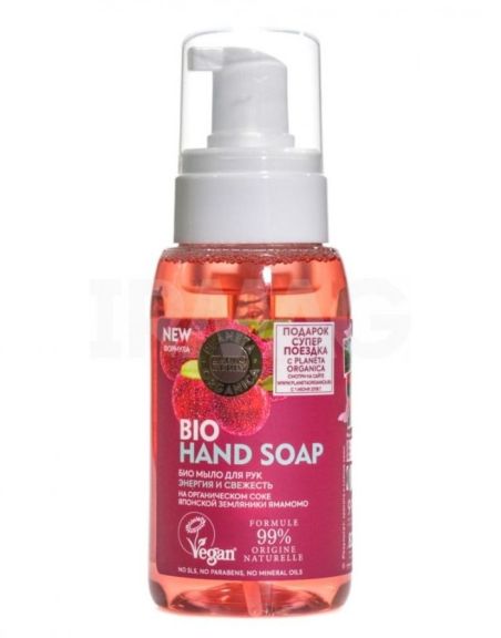 Turbo Berry от Planeta Organica - это энергия сочных органических ягод, которые восполняют потребность кожи в витаминах! Почему мы выбрали Японскую землянику для серии TURBO BERRY? Ямамомо, или японская земляника, много веков оставалась строжайшим секретом красоты и притягательности гейш. Ягоды хранят в себе клад природных антиоксидантов и витаминов А,В,С,Е, которые отбеливают кожу, придавая свежесть и сияние. Аромат ягод является природным афродизиаком и никого не оставляет равнодушным . Ароматная пенка био мыла моментально очищает и надолго освежает нежную кожу рук. Органическое масло бергамота тонизирует и придает коже сияние. Индийский мыльный орех - натуральная моющая основа. Полностью гипоаллергенна. Не содержит SLS и парабенов, не содержит компонентов животного происхождения.