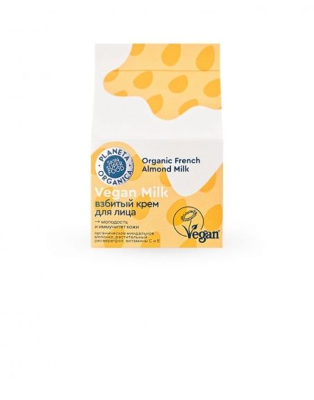 Vegan Milk – коллекция косметики на основе растительного молока и самых полезных ингредиентов со всего мира. Тот самый случай, когда вся нежность мира собрана в одной упаковке. ВЗБИТЫЙ КРЕМ VEGAN MILK увлажнит, подарит твоей коже упругость, мягкость и сатиновое сияние. Органическое миндальное молочко — ореховая нежность и море пользы: витамины А, B, F, E, кислоты и протеины. Повышает иммунитет, делает кожу эластичной, успокаивает и смягчает. Растительный ресвератрол — молекула молодости, содержащаяся в красном винограде. Мощный антиоксидант и активный борец со свободными радикалами, улучшает цвет лица и текстуру кожи. Витамины С и Е — микс для иммунитета, идеального тонуса и эффекта глянцевого сияния! Бескомпромиссно наполняют энергией и активируют гладкость.