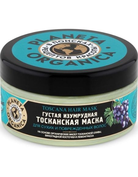 Органические масла тосканской оливы и лемонграсса. - Восстановление внутренней и внешней структуры волос; - 16 основных аминокислот, необходимых для красоты и здоровья волос; Изумрудная маска для волос с органическими маслами мгновенно восстанавливает внутреннюю и внешнюю структуру сухих и поврежденных волос. В солнечной Италии мы закупаем органические масла лучших сортов оливы и виноградной косточки, известные своими увлажняющими и укрепляющими свойствами, которые обоснованы наличием в них олеиновой кислоты и витамина Е — прекрасного антиоксиданта. Плоды оливы собирают вручную, затем отжимают, чтобы получить чистейшее масло, сохранив его многообразные целебные свойства. Масло оливы содержит 16 основных аминокислот, которые жизненно необходимы волосам и коже. Масло оливы питает волосы, делая их шелковистыми, гладкими и блестящими. Лемонграсс устраняет ломкость и сечение волос, дарит им удивительный аромат.