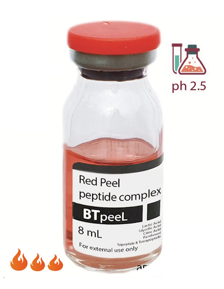 Red peeling gel peptide complex — инновационный всесезонный пилинг-ревитализант нового поколения с биостимулирующим и обновляющим действием. Уникальный состав пилинга обогащён запатентованным пептидным комплексом, направленным против старения кожи, улучшения её тургора, эластичности и плотности. Обновление кожи происходит незаметно, комфортно и плавно, в течение 7-10 дней. В это время рекомендуется использовать солнцезащитные средства, увлажняющие маски и крема. Процесс реабилитации проходит незаметно, что даёт возможность выйти на работу или провести важную встречу не опасаясь за внешний вид. Красный пилинг-ревитализант не требует нейтрализации, после истечения экспозиции пилинг смывается прохладной чистой водой. Процедуру рекомендуется проводить в нитриловых перчатках. Дерматологически протестирован и сертифицирован.