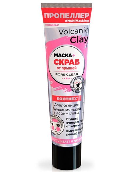 INCI: Aqua (Water), Kaolin, Propylene Glycol, Stearic Acid, Cetearyl Alcohol, Zea Mays (Corn) Oil, Glycerin, Glyceryl Stearate, Mineral Oil, Betaine, Titanium Dioxide, Beeswax, Dipropylene Glycol, Boswellia Serrata Gum, Potassium Azeloyl Diglycinate, Moroccan Lava Clay, Volcanic sand, Tocopheryl Acetate, Polyethylene, Triethanolamine, Citric acid, Xanthan Gum, Disodium EDTA, ВНТ, Methylparaben, Propylparaben, Benzyl Alcohol, Methylisothiazolinone, Methylchloroisothiazolinone, Parfum, Coumarin, CI 19140, CI 16035, CI 42090, СI 14720, СI 47005