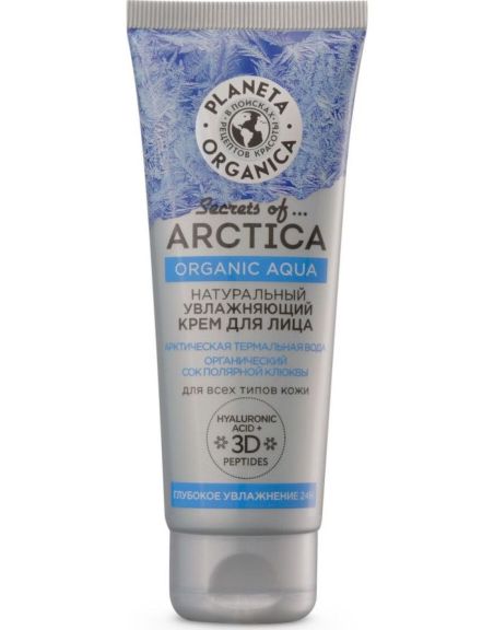 Натуральный увлажняющий крем для лица восстанавливает естественный ph-баланс кожи и помогает сохранить в ней оптимальный уровень влаги. Кожа выглядит здоровой, свежей и сияющей. Арктическая термальная вода мгновенно избавляет кожу от ощущения сухости и стянутости, наполняя влагой каждую клетку. Органический сок полярной клюквы содержит в 20 раз больше витамина С, чем лимон. Заряжает кожу энергией и придает сияние. Высокомолекулярная гиалуроновая кислота восполняет запасы влаги в клетках и делает кожу более гладкой и упругой. Комплекс 3D пептидов стимулирует выработку коллагена и эластина, восстанавливает тонус и разглаживает морщины.