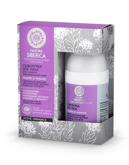 Сыворотка для чувствительной и сухой кожи лица Natura Siberica (Натура Сиберика) на основе натурального липидного комплекса и экстракта ценнейшего сибирского растения - родиолы розовой - предназначена для смягчения кожи. Кроме того, использование сыворотки значительно усиливает воздействие компонентов ухаживающих кремов. В составе сыворотки использованы протеины шёлка, которые активно питают клетки кожи, натуральный липидный комплекс позволяет полезным природным веществам глубоко воздействовать на кожу и питать её. В свою очередь, включённый в состав сыворотки для чувствительной и сухой кожи лица Natura Siberica витамин F стимулирует и оптимизирует натуральный липидный обмен клеток кожи.