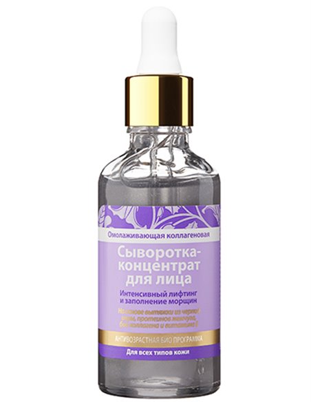 Коллагеновая сыворотка-концентрат, созданная по рецептам сибирской травницы Агафьи, содержит действенные омолаживающие компоненты, которые глубоко питают кожу и интенсивно разглаживанию морщины. Вытяжка из черной икры насыщает кожу ценными питательными веществами, стимулирует процессы регенерации, способствуя активному омоложению. Протеины жемчуга - уникальный природный компонент, получаемый из драгоценных жемчужин, он интенсивно увлажняет кожу и придает естественное сияние. Био коллаген и витамин Е значительно увеличивают упругость и эластичность, заполняют глубокие морщины и подтягивают кожу.