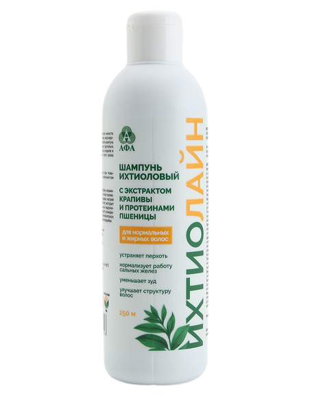Ихтиоловый шампунь от перхоти лечебный Ихтиолайн с экстрактом крапивы и протеинами пшеницы. Это высокоэффективный шампунь от перхоти, созданный на основе активных компонентов природного происхождения. Лечебный Ихтиоловый шампунь от перхоти содержит следующие активные ингредиенты: