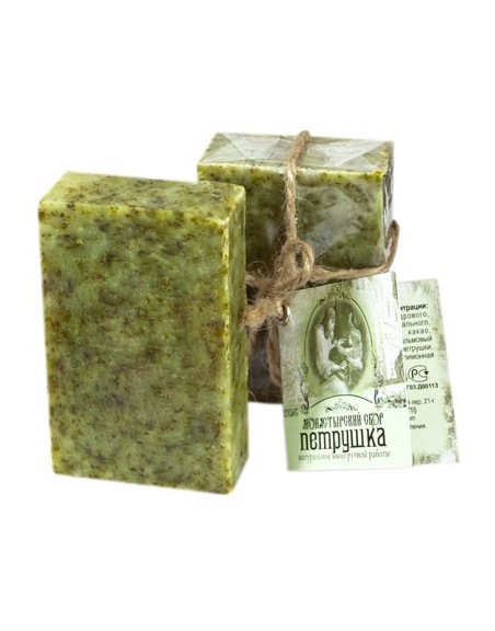 Высококачественное натуральное мыло ручной работы. Изготовлено из смеси шести растительных масел. Обогащенно экстрактом петрушки. Мыло интенсивно-зеленого цвета с вкраплениями свежей травы петрушки, с приятным травяным ароматом.